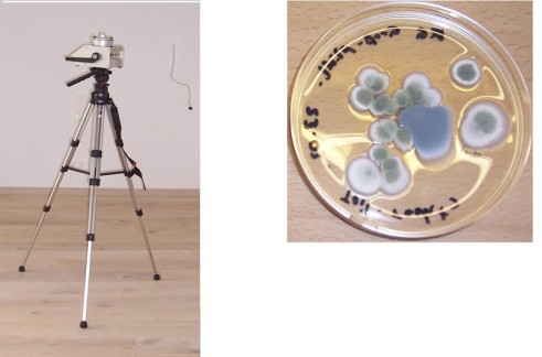 rechtes Bild: Schimmelpilzkolonien auf einem Nährboden